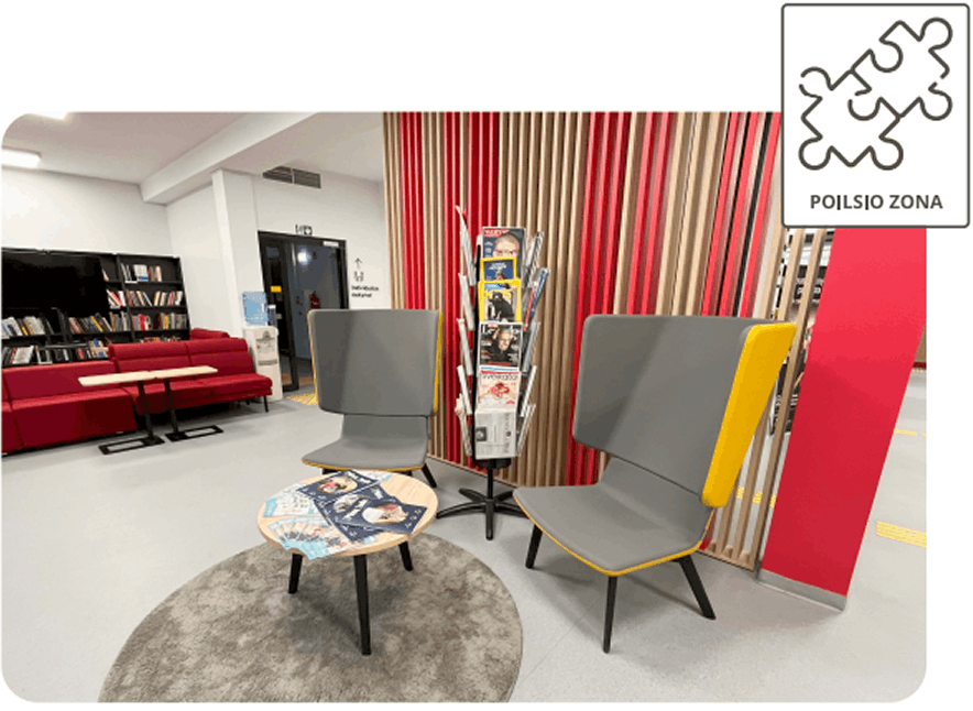 Kartais gali būti daug triukšmo. Jei taip atsitiktų, galiu pasikalbėti su bibliotekos darbuotoju, nueiti į ramesnę vietą, pasinaudoti garsą slopinančiomis ausinėmis